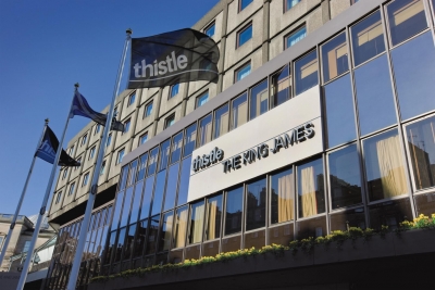 The King James is a suitably royal name for a hotel located just off Edinburgh s world-famous Princes Street, and just a short walk from the Royal Mile, dominated by Edinburgh Castle at one end and the palace of Holyroodhouse, still the Queens official residence in the Scottish capital, at the other.
